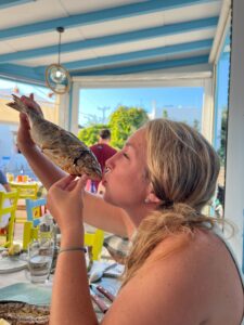 (3) Check out local bulletin boards for events and festivals. Where there’s a party, there’s local food. Miraculously, on our family trip to Spain in 2019, every town we came to was hosting some sort of festival. In Greece this past June 2022, we happened across a fire jumping festival celebrating the summer solstice. We specifically found out about it by looking at a community events board, and Everett ended up jumping the fire. Memories, right?!